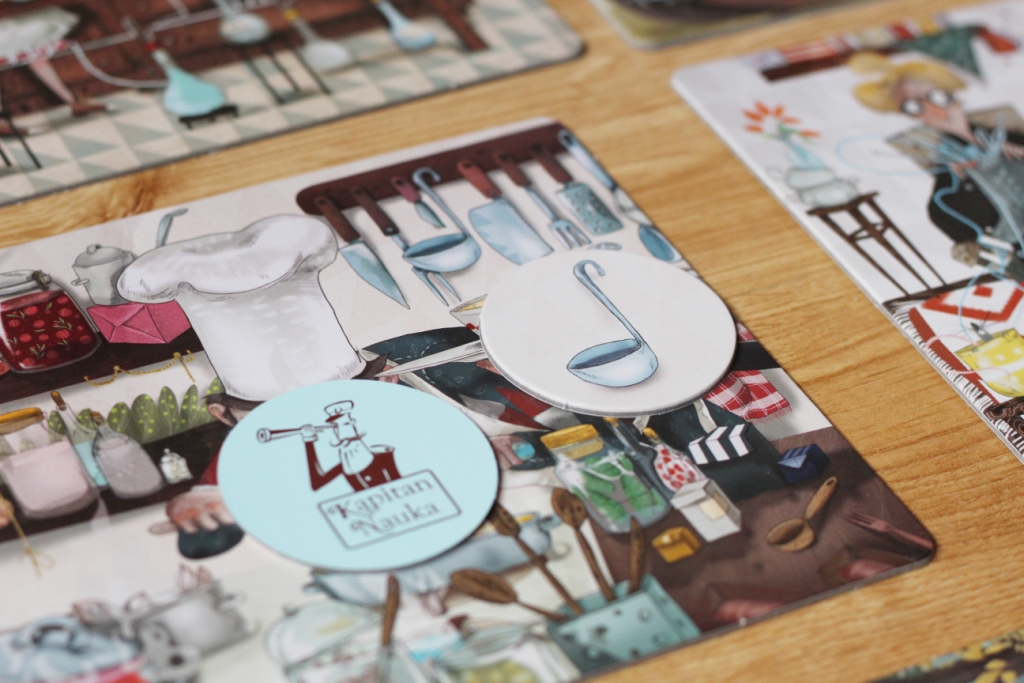 Zdecydowanie starsze dzieci odnajdą się w tej grze. Myślałam, że dla mojej córki, która ma dwa i pół roku rysunki są za trudne, ale przy jednej planszy i 6 żetonach spokojnie sobie radzi. Nie mówiąc o synu, który za kilka miesięcy skończy cztery lata. Zarówno plansze, jak i żetony są wykonane bardzo estetycznie, z grubej tektury. Wszystko zapakowane jest w pudełko swoim wyglądem przypominającym kuferek. Gra jest idealna do wspólnej zabawy. Rodzic może dowolnie animować dziecko.